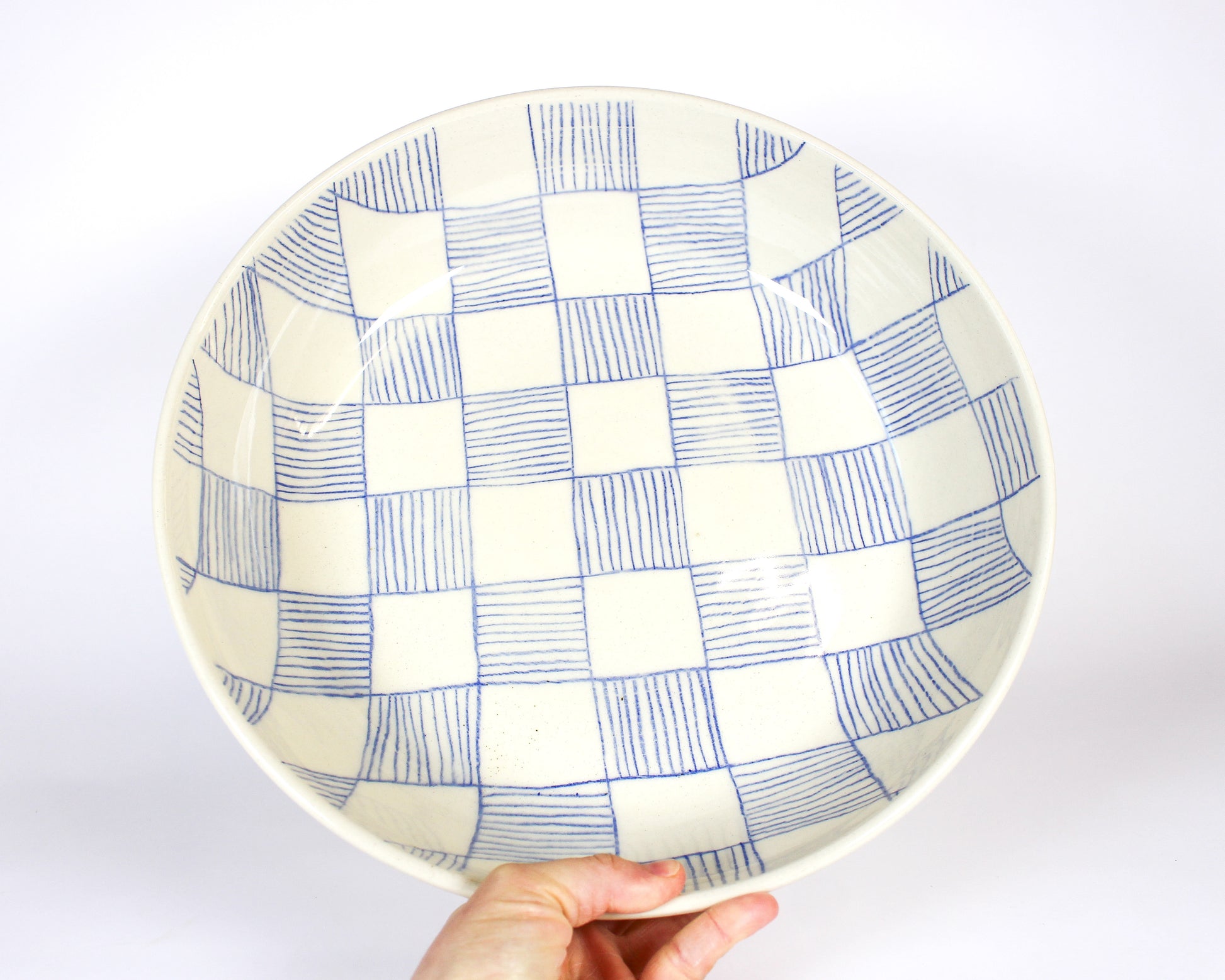 Each piece is turned on the wheel or slip-casted, trimmed, sanded and fired in an electric kiln. Surface decoration in the form of glazing comes next, followed by a final firing. All items are food safe and microwave safe, unless other wise noted.