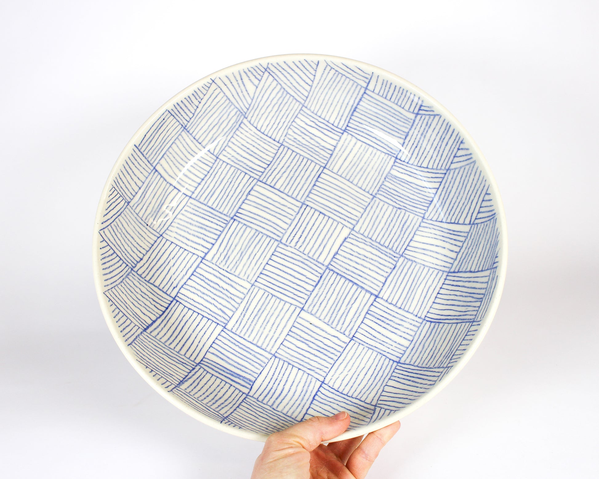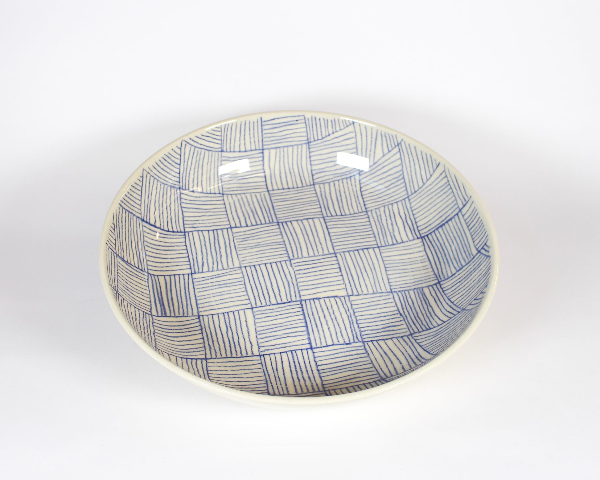 Each piece is turned on the wheel or slip-casted, trimmed, sanded and fired in an electric kiln. Surface decoration in the form of glazing comes next, followed by a final firing. All items are food safe and microwave safe, unless other wise noted.