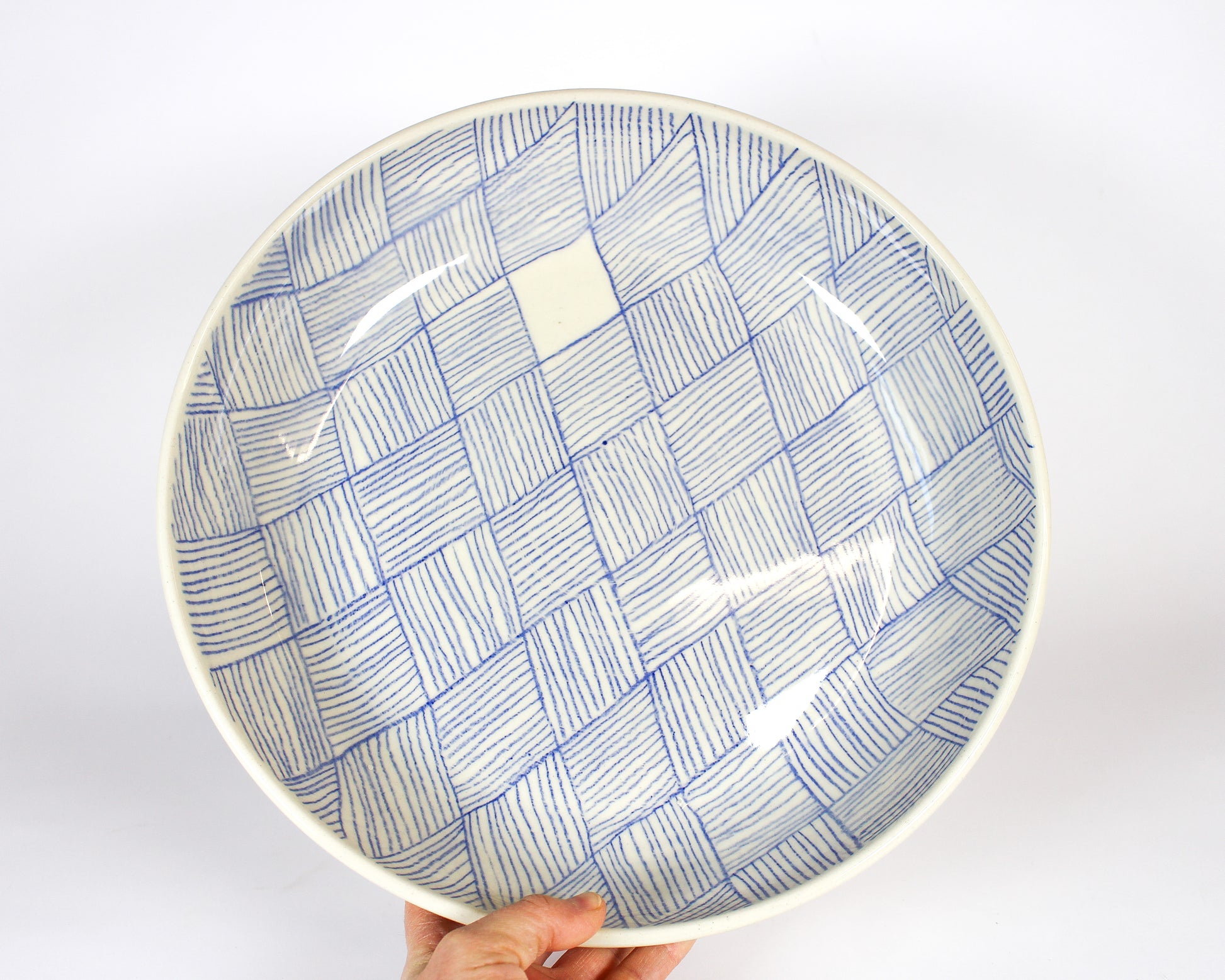 Large Shallow Bowl - Lined Blue 4